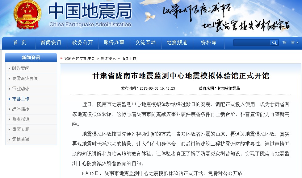 我公司承建的甘肅地震模擬體驗館在經過數日的安裝、調試,在隴南市地震監測中心正式交付運行。在此期間得到了災區領導和專家的一致認可和好評,成為甘肅省地震模擬體驗館。這也標志著我公司的地震體驗設備和展品生產、制造和性能達到了更高的水平。