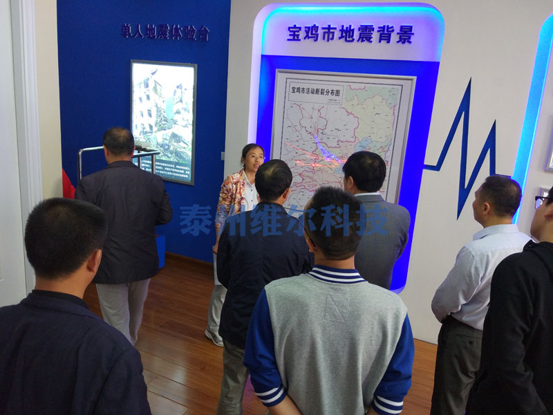 寶雞市防震減災(zāi)科普教育基地?fù)碛?前言燈箱、中國活動構(gòu)造圖(地震-群災(zāi)之首)、寶雞市地震背景、地球內(nèi)部構(gòu)造模型、單人地震體驗臺、制造地震模擬體驗臺、地震虛擬仿真場景逃生訓(xùn)練系統(tǒng)、縱橫波模擬演示器、地震災(zāi)害虛擬翻書、地震知識搶答系統(tǒng)、張衡地動儀、干粉滅火器等