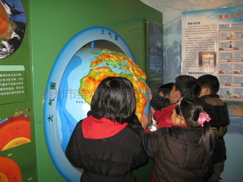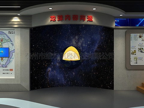 產品名稱:地震內部構造模型 產品介紹:本展項采用地球儀模型,其中地球儀八分之一部分為剖面,顯示地球內部模型,并運用現代科技將地球儀模型嵌入在背景墻上,并且可以轉動。從地殼到地幔,從外地核到內地核,參觀者可以直觀了解地理知識和地球構造知識。設計制作本展品目的就是讓參觀者形象生動地了解地球構造知識,在娛樂中接受知識,從而達到科普推廣的效果。