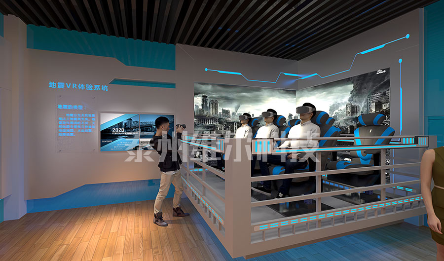 VR earthquake platform 本產品是利用頭戴式VR虛擬現實系統與地震平臺系統相結合的一款用于體驗地震等災難體驗及學習災難知識的互動產品。常規情況下,體驗臺能夠乘坐9-12人 (可定制) 產品分為硬件模組與軟件模組。硬件模組分為,頭部顯示系統,地震特效系統,環境特效系統, 安全輔助系統數據處理系統六大部分。 影片全長3分鐘,第一部分是VR地震知識介紹3D動畫,向觀眾介紹地震是什么,地震形成原因,地震來了怎么避險。第二部分是VR地震體驗3D場景,首先感受室內地震畫面,室內吊燈掉落,墻面裂開,室外房屋倒塌、地面塌陷、汽車碰撞 一片火海;讓觀眾身臨其境地感受地震的巨大破壞性,同時了解在地震中如何躲避逃生及自救。 運用場景:可以在各大安全教育展廳,學校等教育領域.