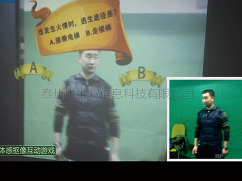 游戲待機(jī)畫面尾循環(huán)播放視頻。玩家站到綠幕指定區(qū)域則開始游戲。 關(guān)卡一:玩家需要在指定區(qū)域移動腳步,用身體接住屏幕上方落下的道具,在限定時(shí)間內(nèi)接滿全部道具則進(jìn)入下一關(guān),相反則游戲失敗,回到待機(jī)畫面; 關(guān)卡二:玩家需要在指定區(qū)域移動腳步,站在當(dāng)前問題的正確答案所在位置,答對所有答案則進(jìn)入下一關(guān),相反則游戲失敗,回到待機(jī)畫面; 關(guān)卡三:玩家需要再指定區(qū)域原地跑步,通過跳躍和下蹲躲過屏幕中迎面而來的障礙,在限定時(shí)間內(nèi)躲過所有障礙則進(jìn)入下一關(guān),碰撞到障礙則游戲失敗,回到待機(jī)畫面;可以收集屏幕中的滅火器道具,讓身體周圍出現(xiàn)屏障,屏障存在時(shí)間內(nèi)障礙物無法對玩家造成傷害; 關(guān)卡四:請參考關(guān)卡二說明; 關(guān)卡五:玩家需要移動身體和揮動雙手,把屏幕中的火焰撲滅,在限定時(shí)間內(nèi)讓一定比例的火焰熄滅則游戲通關(guān),相反則游戲失敗,回到待機(jī)畫面。