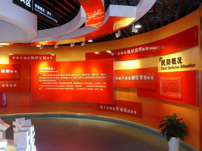 民防科普教育館共設(shè)序廳、人民防空、都市型災(zāi)害、災(zāi)害逃生、自救與互救、展望明天、尾廳7個(gè)展廳,涵蓋中國人民防空發(fā)展、歷史空襲、防空行動(dòng)、民防建設(shè)、火災(zāi)逃生、公共安全、急救工具展示、知識(shí)問答等展項(xiàng)。